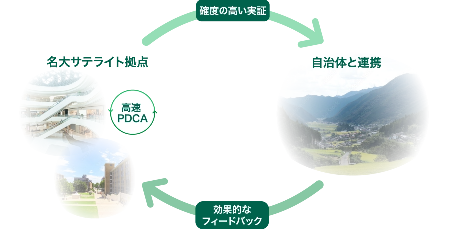 地方都市・中山間地域の課題にアクセス、官民と連携しながら研究開発や製品・サービス開発が可能です。これにより、ニーズに裏打ちされた確かな製品・サービスの全国展開が期待できます。