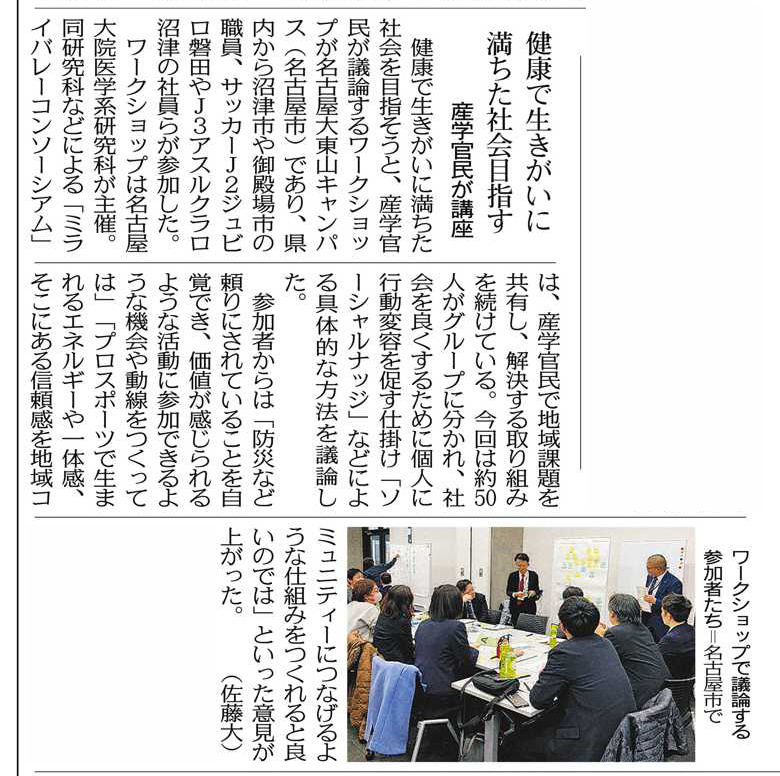 2025年3月6日、名古屋大学東山キャンパスに於いて、名古屋大学 医学系研究科主催、健康医療ライフデザイン統合研究教育拠点(C-REX)、未来社会創造機構及びミライバレーコンソーシアム協賛にて開催されたワークショップの様子が、東京新聞 静岡版 2025年3月18日付に掲載されました。